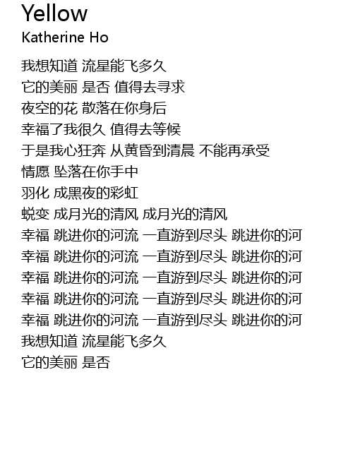 | [01:33.41] | 幸福 跳进你的河流 一直游到尽头 跳进你的河 |