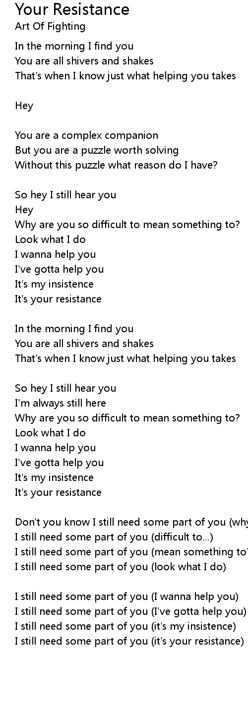 I still need some part of you (it's your resistance) |