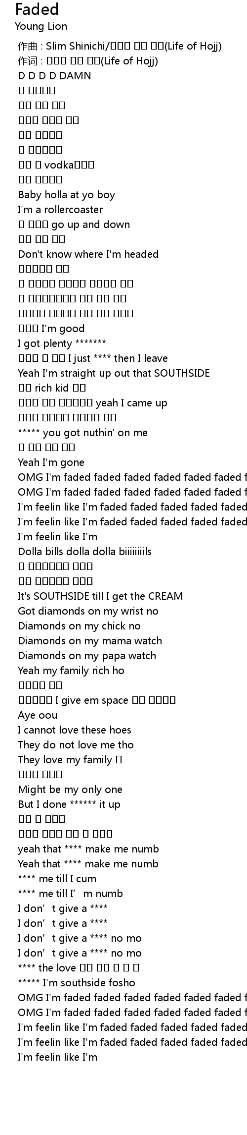 | [01:24.851] | I' m feelin like I' m faded faded faded faded faded faded faded |