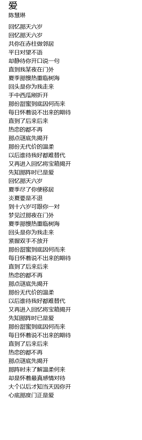 | [00:20.040] | 回忆那天六岁 |