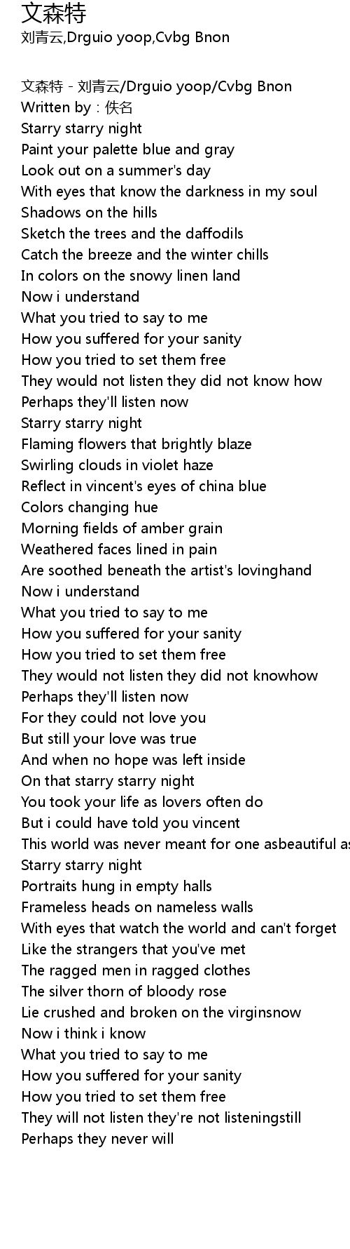 | 文森特 - 刘青云/Drguio yoop/Cvbg Bnon | |