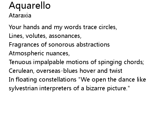 | In floating constellations "We open the dance like unusual comedians or sylvestrian interpreters of a bizarre picture." |