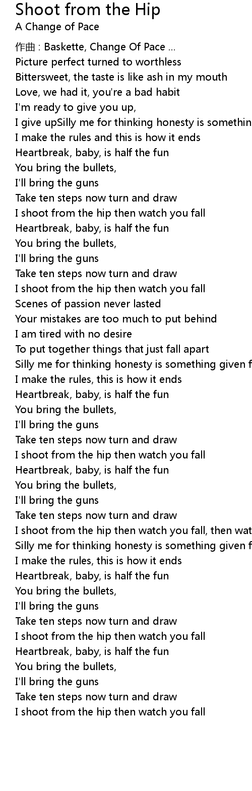 | Song | Shoot from the Hip |