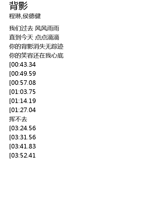 | [04:35.18][03:52.41][02:02.87] | 挥不去 你的背影 |
