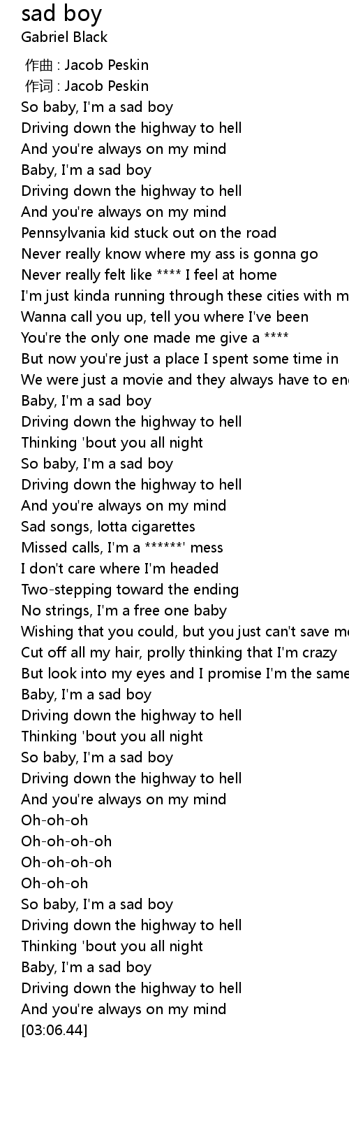 | [02:45.07] | So baby, I'm a sad boy |