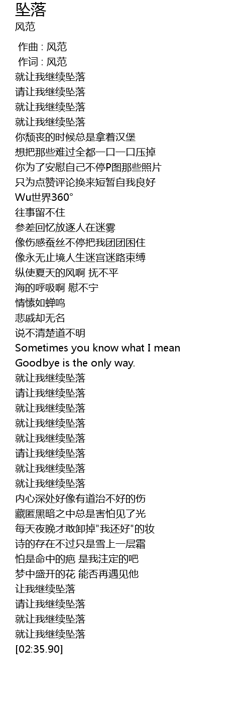 | [01:38.78] | 就让我继续坠落 |