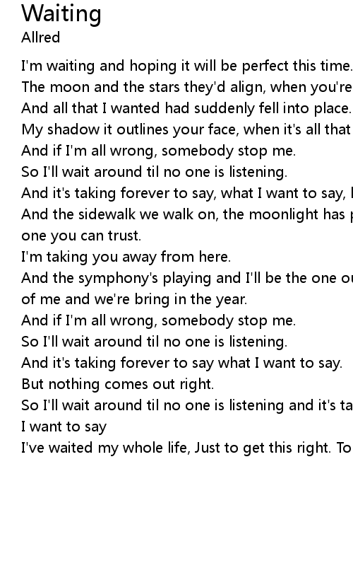 | So I'll wait around til no one is listening and it's taking forever to say, waht I want to say | |