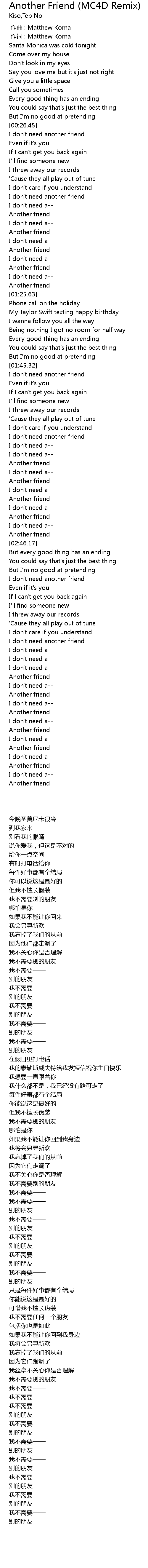 | [00:43.47] | I don't need another friend |