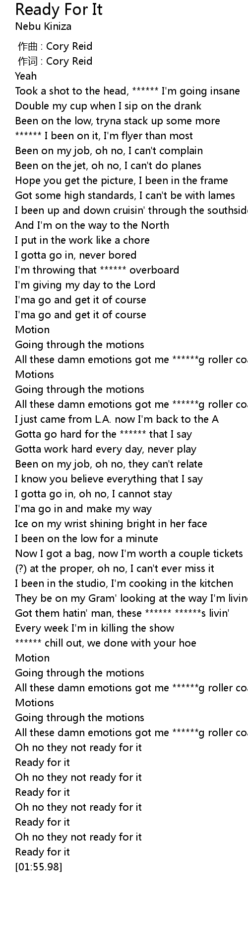 | [00:43.61] | All these damn emotions got me ******g roller coastin' |