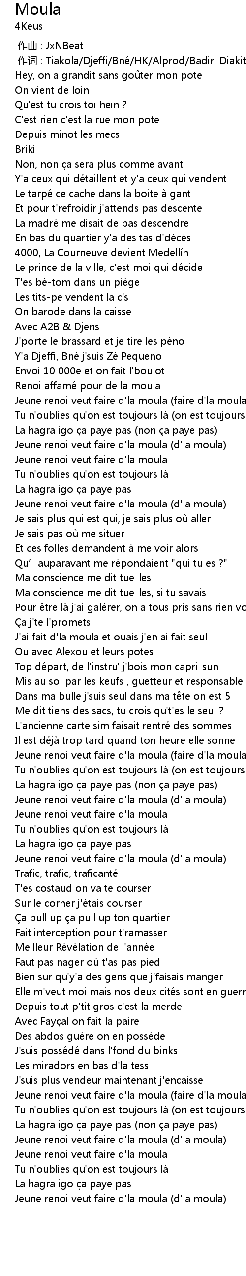 | [03:40.52] | Jeune renoi veut faire d'la moula (d'la moula) |