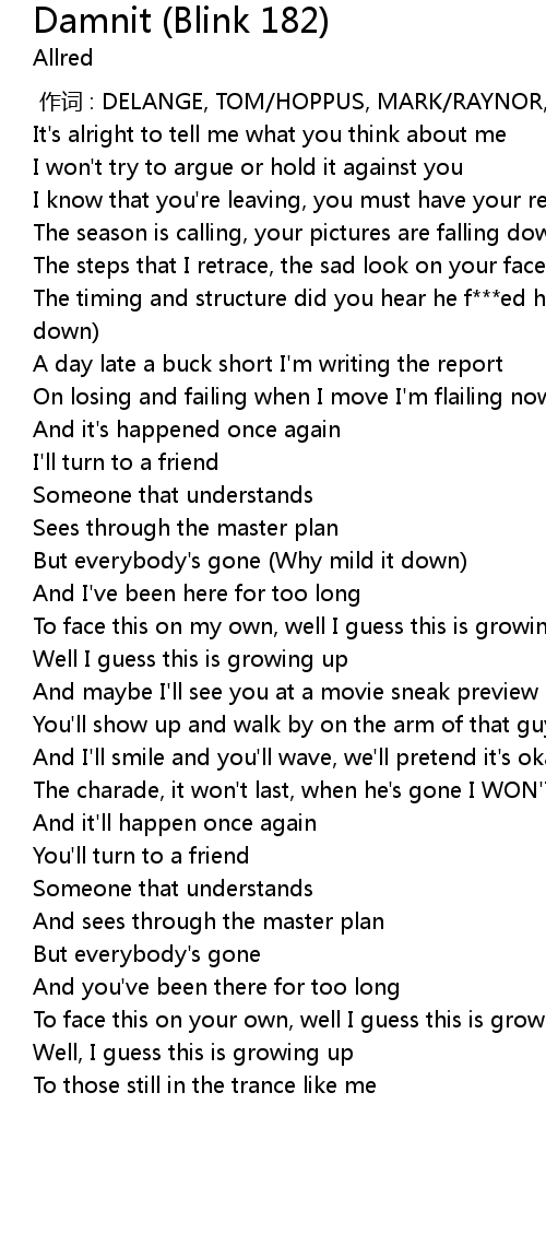 | [00:00.00] | 作词 : DELANGE, TOM/HOPPUS, MARK/RAYNOR, SCOTT |