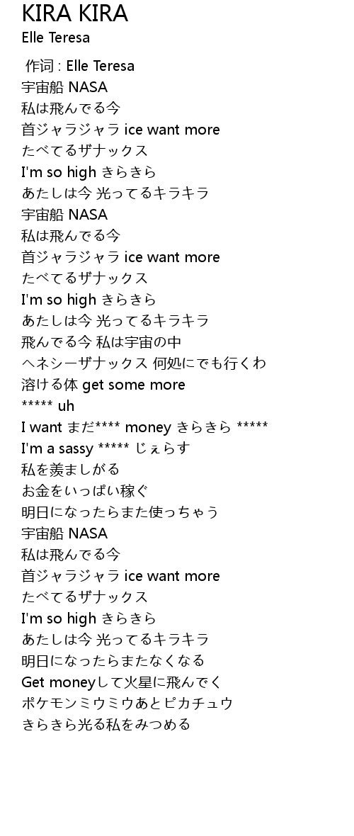 | [00:59.35] | I want まだ**** money きらきら ***** |