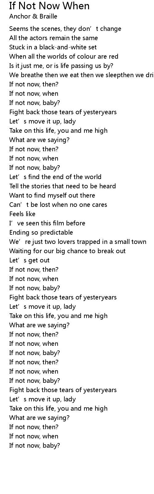 | Song | If Not Now When |