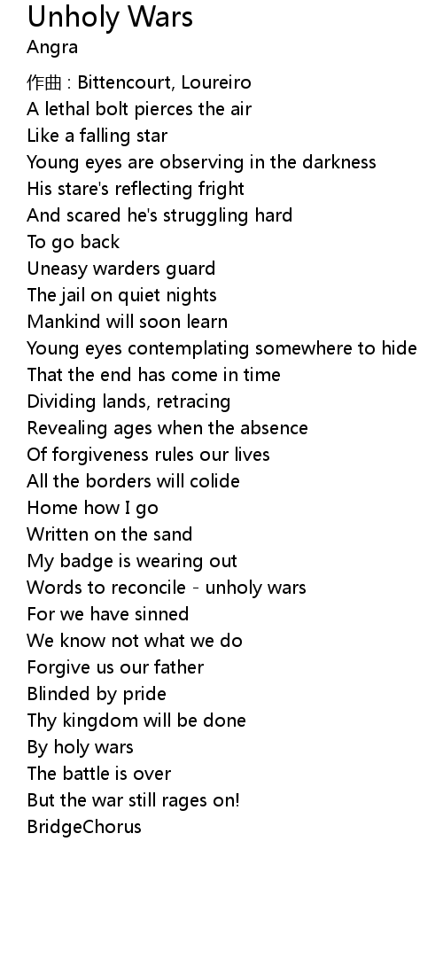 | Words to reconcile - unholy wars | |