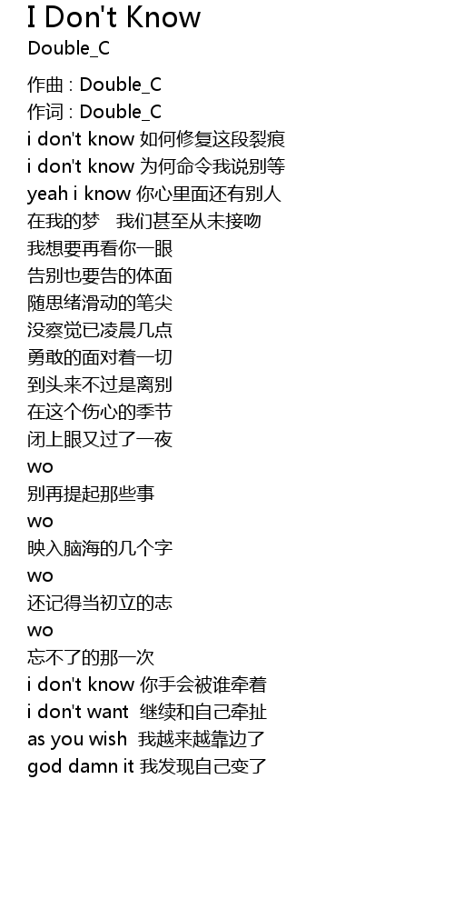 | i don' t know nǐ shǒu huì bèi shuí qiān zhe | |