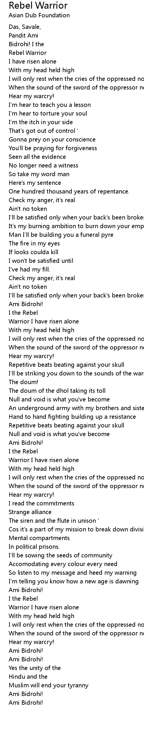 Warrior I have risen alone |