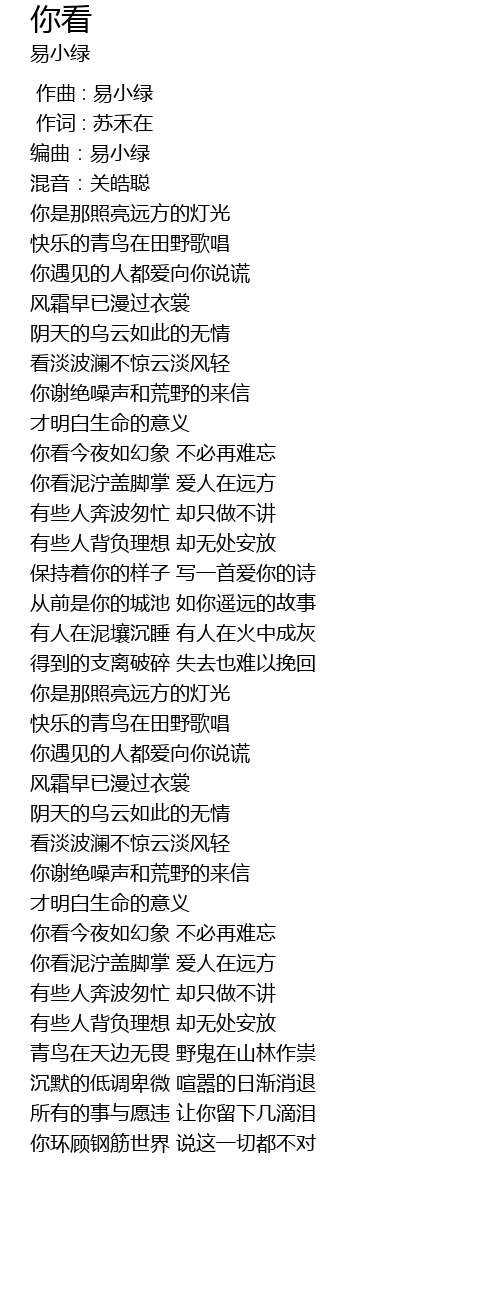 | [03:43.92] | 你看今夜如幻象 不必再难忘 |
