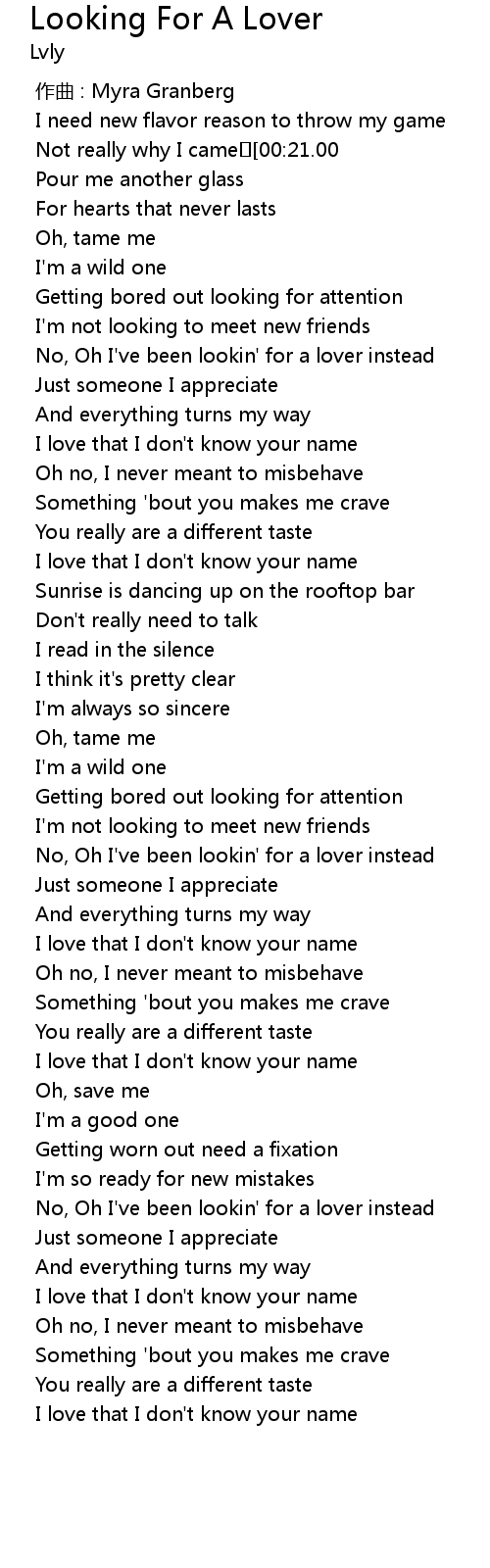 | [00:41.70] | No, Oh I've been lookin' for a lover instead |