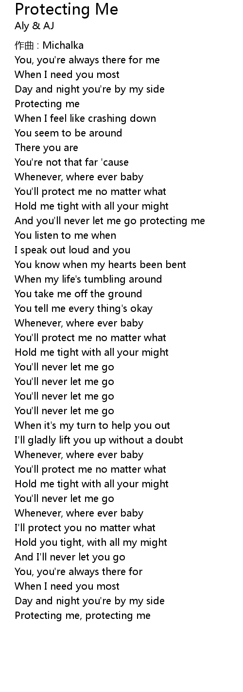 | And you'll never let me go protecting me | |