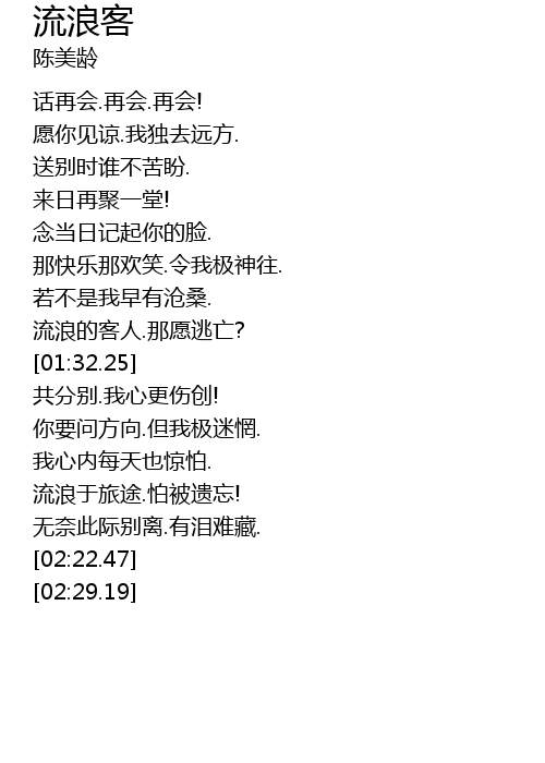 | [01:23.40] | 流浪的客人.那愿逃亡? |