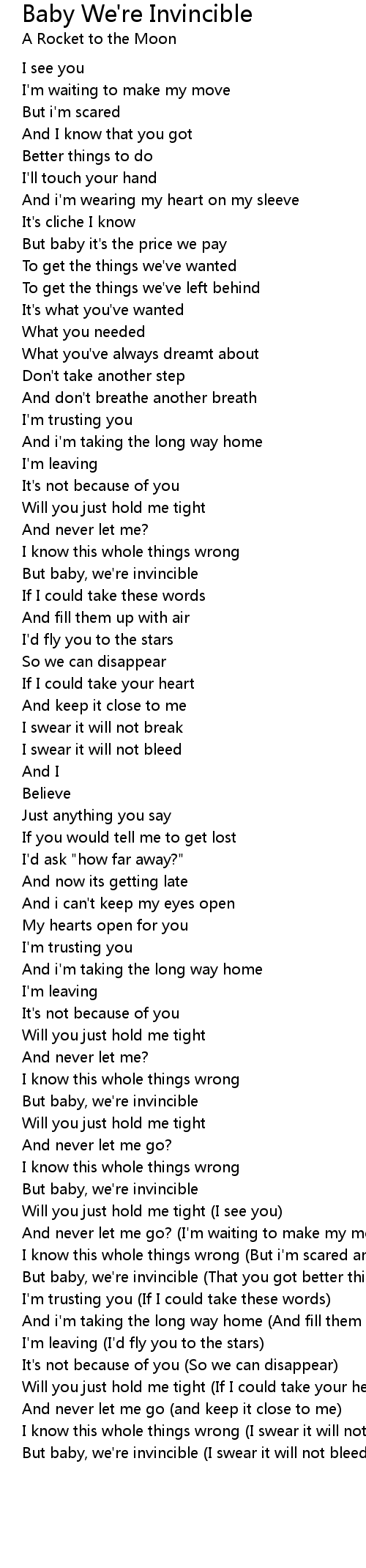 But baby, we're invincible |