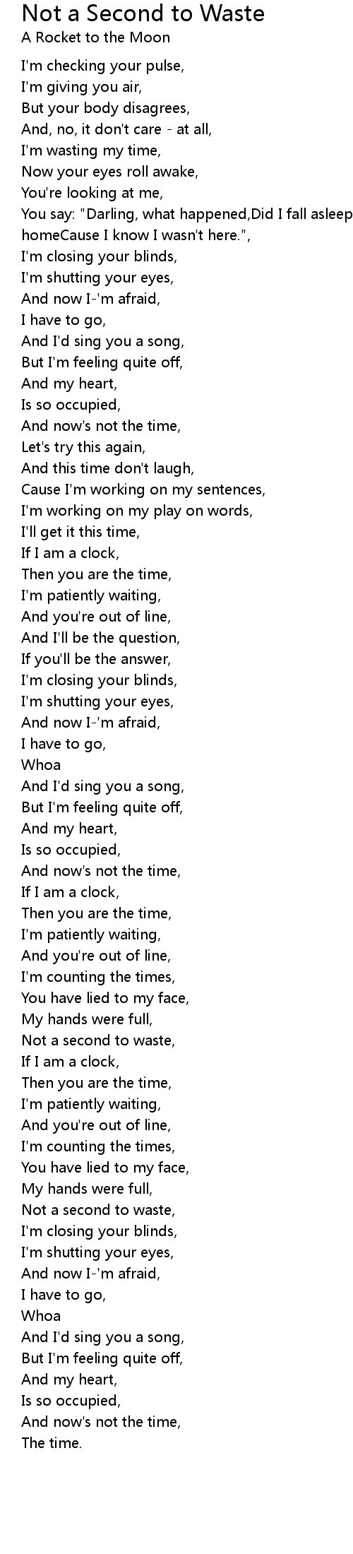 Not a second to waste, |