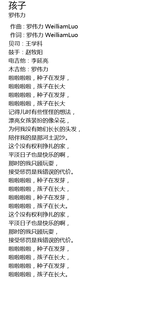 | [00:01.000] | 作词 : 罗伟力 WeilliamLuo |