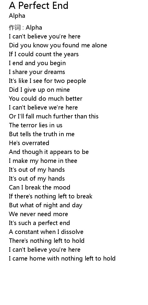 | Song | A Perfect End |