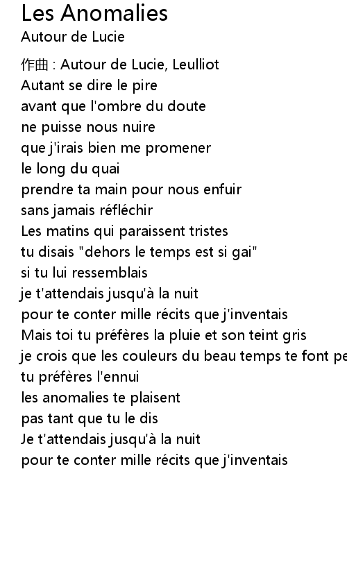 | Song | Les Anomalies |