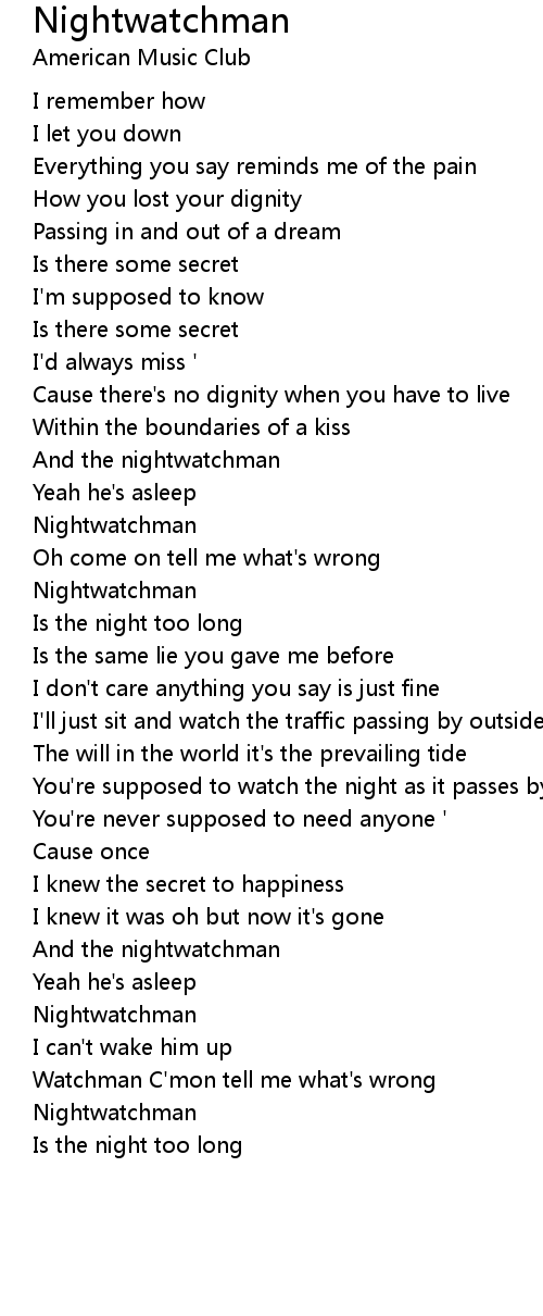 Watchman C'mon tell me what's wrong |