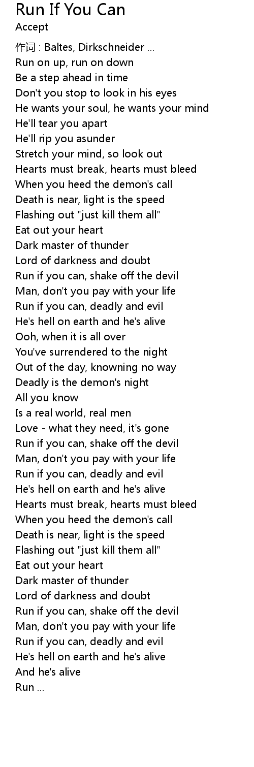 | Run if you can, shake off the devil | |