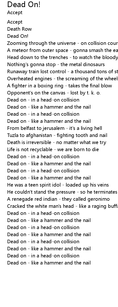 | Dead on - like a hammer and the nail |
