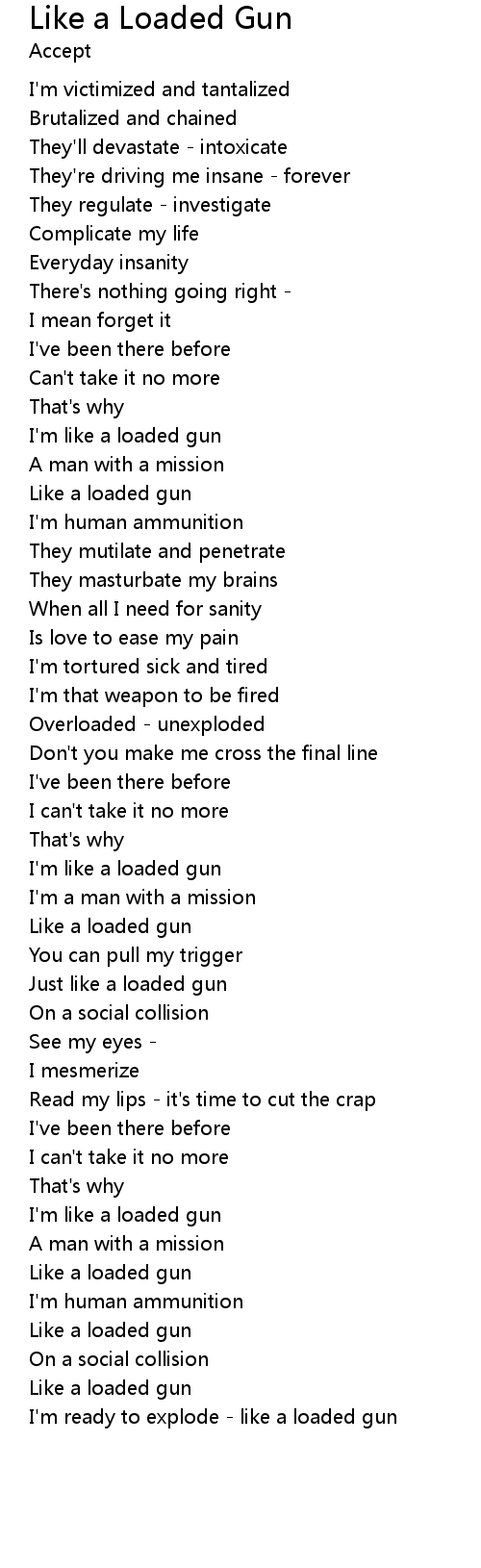 | I'm like a loaded gun | |
