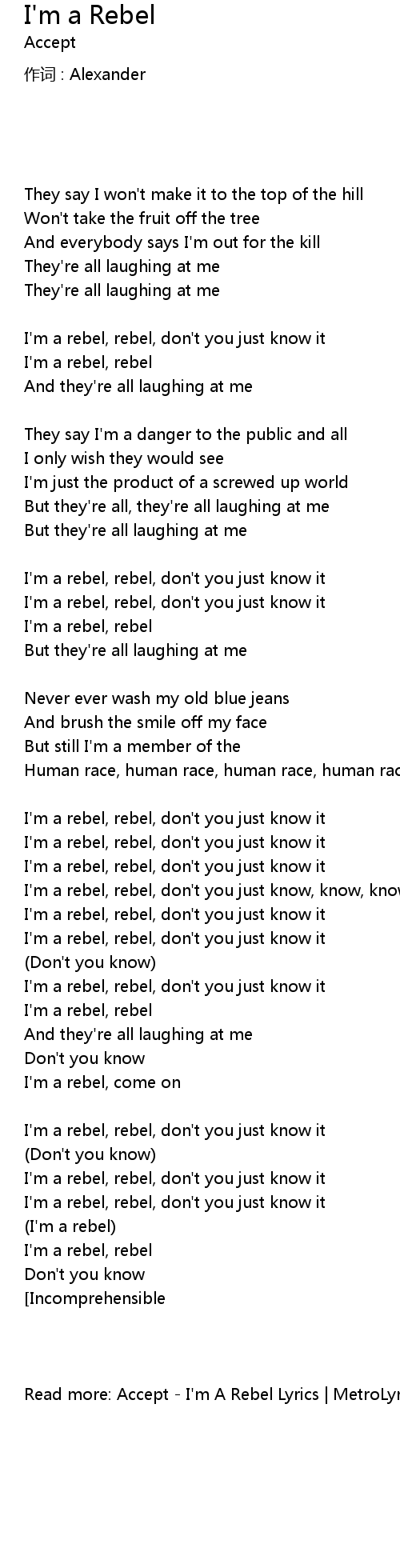 | Read more: Accept - I'm A Rebel Lyrics | MetroLyrics | |