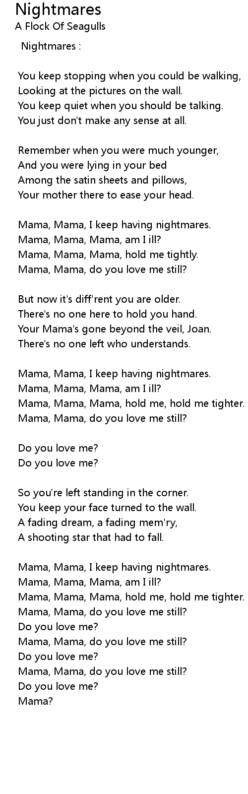 Mama, Mama, I keep having nightmares. |