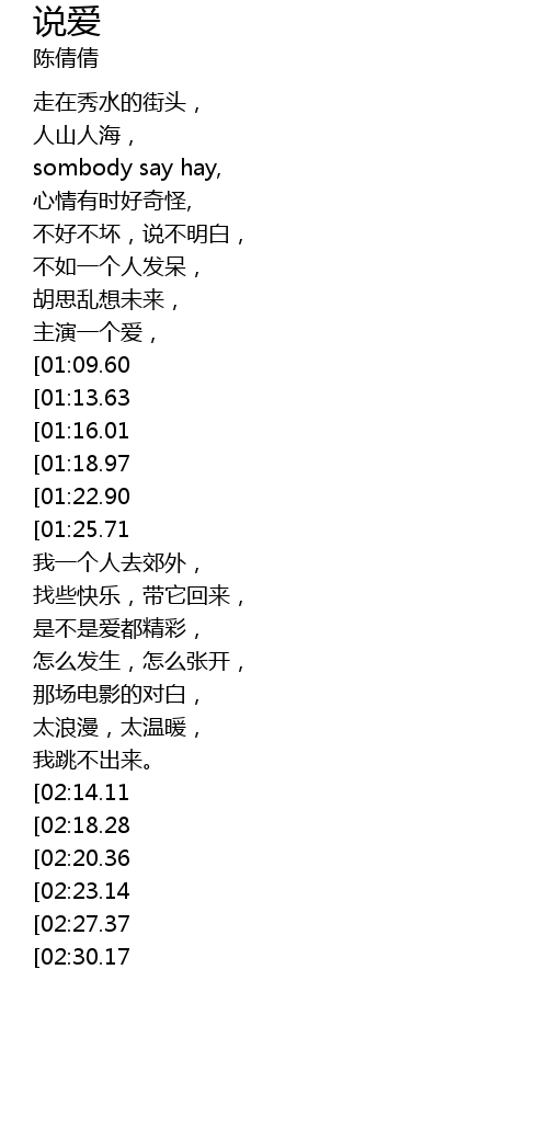 | [02:51.36][01:09.60] | saylove,saylove难猜, |