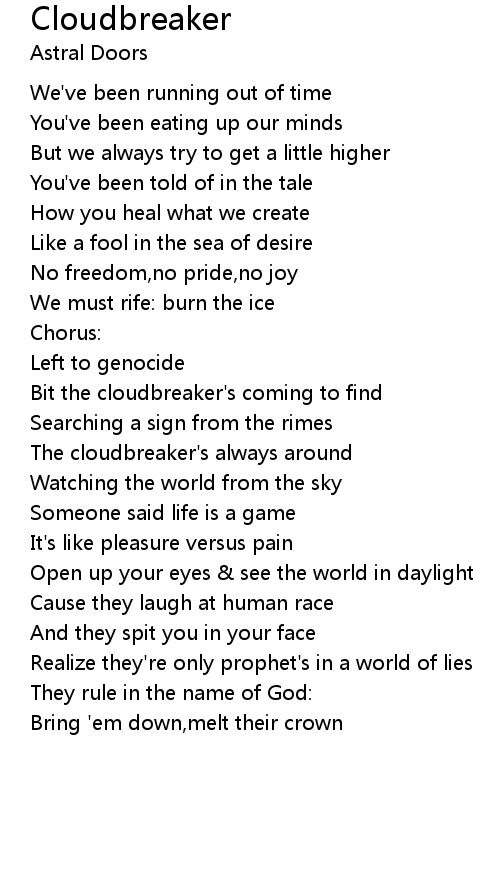 Bit the cloudbreaker's coming to find |