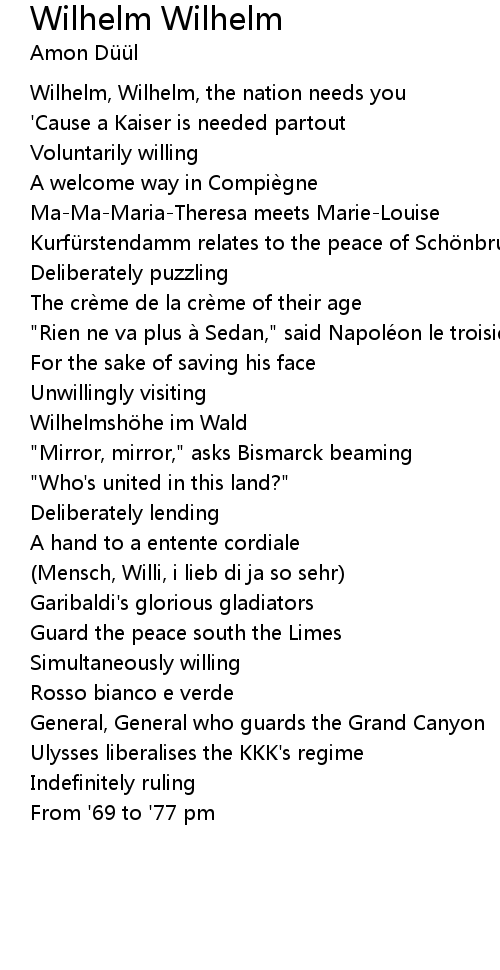 | Wilhelm, Wilhelm, the nation needs you | |