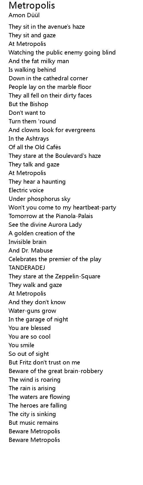 | Song | Metropolis |