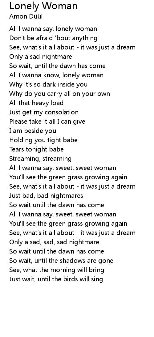 | All I wanna know, lonely woman | |