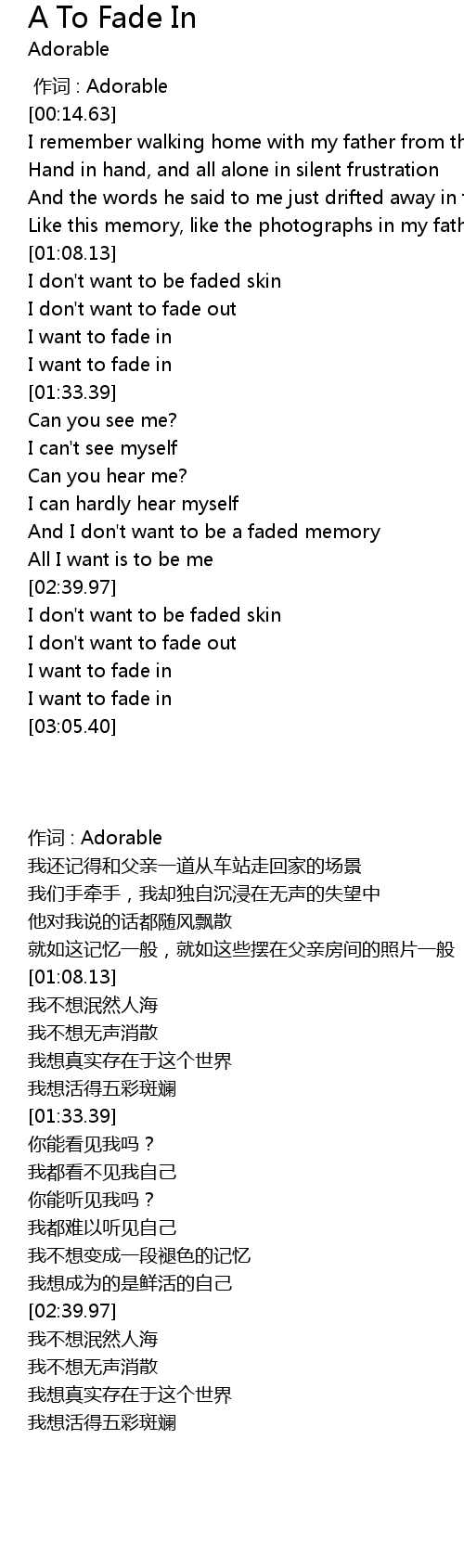 | [00:59.22] | Like this memory, like the photographs in my father' s house |