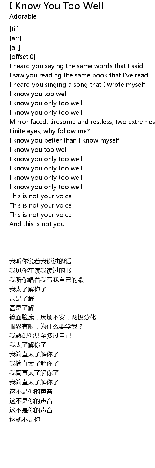 I know you too well |
