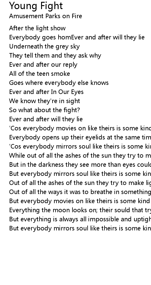 'Cos everybody mirrors soul like theirs is some kind of young fight |