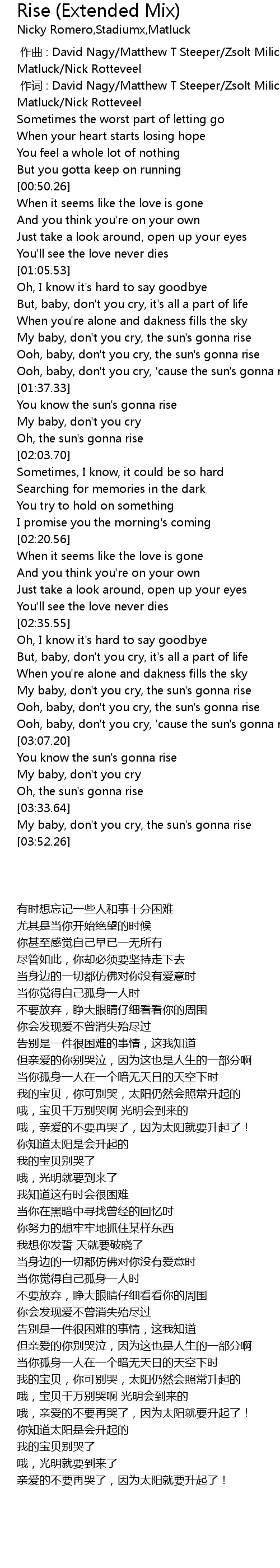 | [02:59.31] | Ooh, baby, don't you cry, 'cause the sun's gonna rise |