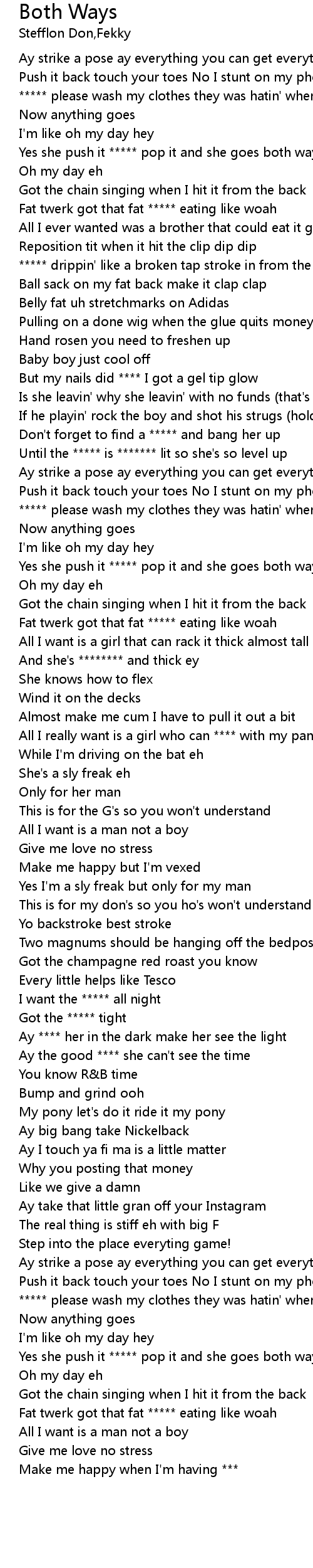 | [00:27.94] | Yes she push it ***** pop it and she goes both ways |
