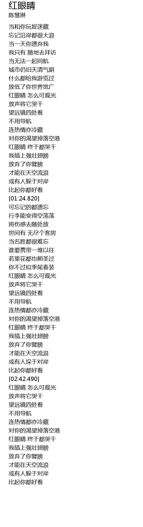 | [02:23.580] | 红眼睛 终于都哭干 |