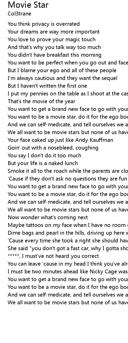 | [02:36.43] | You want to be a movie star, do it for the ego boost |