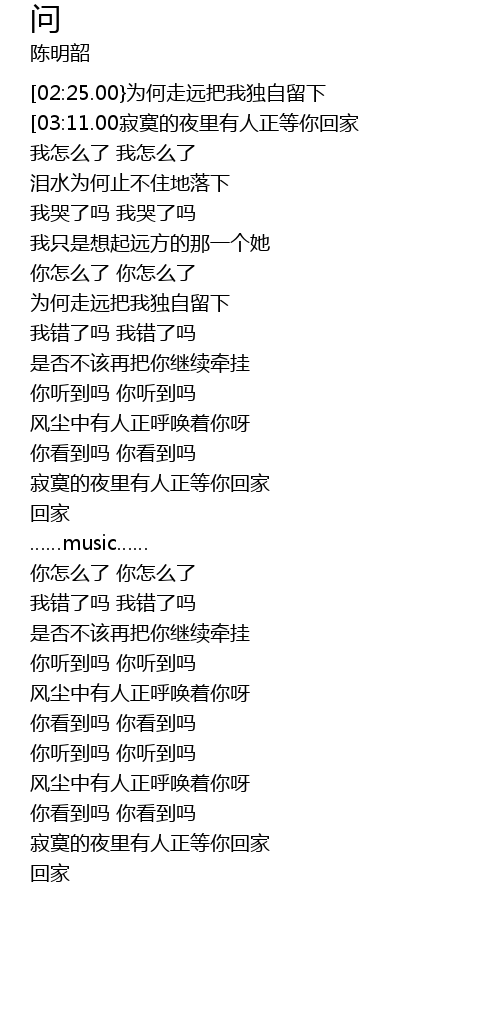 | [02:25.00}为何走远把我独自留下 | |