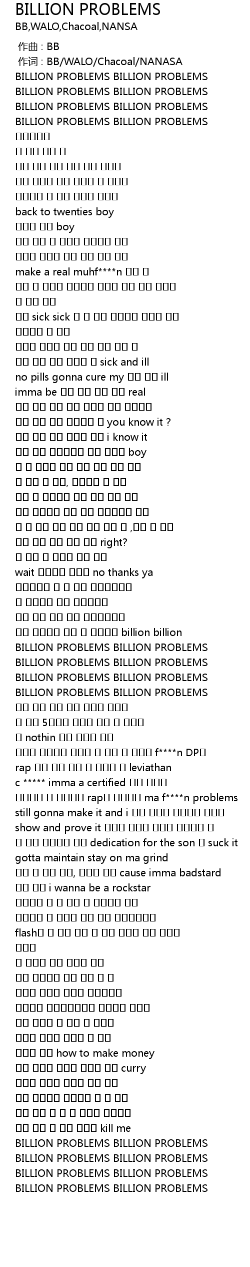 | [01:48.33] | BILLION PROBLEMS BILLION PROBLEMS |