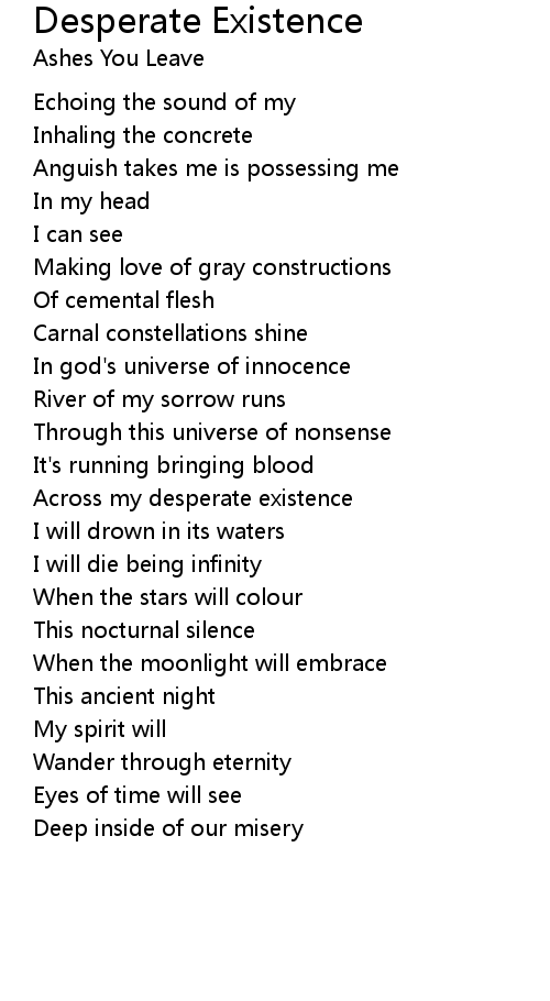 Across my desperate existence |